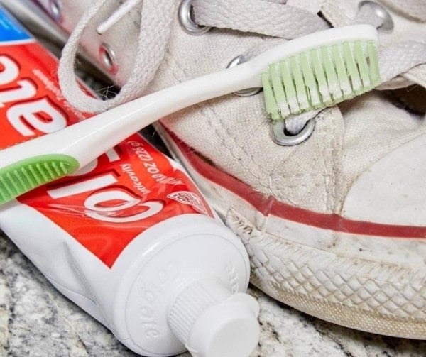 Đây là cách phổ biến và dễ dàng nhất nhất vì kem đánh răng có chất làm trắng rất tốt mà không ảnh hưởng đến chất lượng vải của giày, giúp bạn tẩy được vết ố vàng trên đôi Converse trắng hoặc sáng màu mà không cần sử dụng chất tẩy rửa