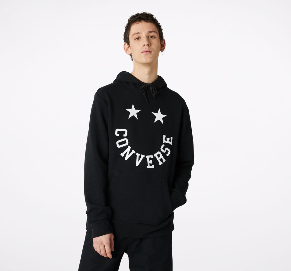 Đơn giản, trẻ trung và dễ phối đồ chính là đặc điểm khiến chiếc áo Cheerful Graphic Pullover Hoodie trở nên vô cùng hot hit. Tông màu đen nam tính, chỉ cần thêm logo Converse màu trắng ở giữa đã tạo ra được điểm nhấn đủ để nó trở nên nổi bật. Với chiếc áo này, các bạn trẻ có thể phối kết hợp với rất nhiều outfit khác nhau mà vẫn phù hợp và đẹp mắt.