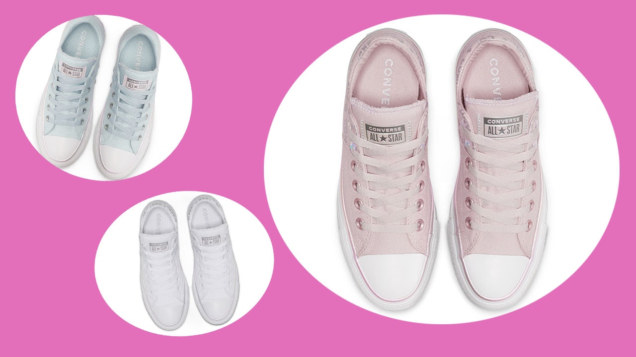 Đã là con gái, thì không thể thiếu một chút điệu đà nhẹ nhàng và đáng yêu, chính vì vậy BST Chuck Taylor All Star Madison Interstella được hãng Converse gửi gắm đến các nàng những tông màu không thể yêu hơn: trắng, hồng – xanh pastel siêu nhẹ nhàng, xám trắng, … Theo Converse, đây chính là những tông màu lấy cảm hứng từ các màu sắc của những tinh vân thiên hà cộng hưởng với hiệu ứng Iridescent – phản quang đẹp mắt, màu sắc của những dòng chữ Converse được in ở gót giày có thể đổi màu khi có ánh sáng hoặc khi bạn thay đổi góc nhìn.