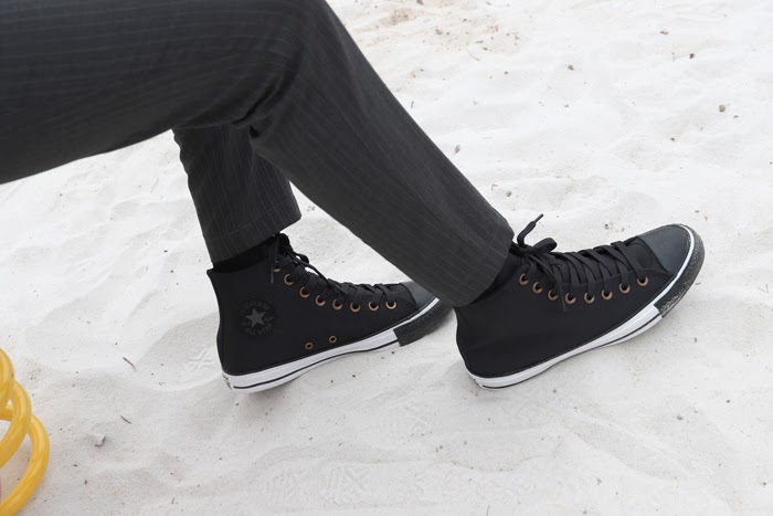 Phần sau gót giày cũng có miếng cao su có màu sắc tương tự nhằm mang lại một tổng thể hoàn hảo. Về chất liệu, một điểm nhấn không thể không nhắc tới ở BST này đó chính là chất liệu thân giày được làm từ Polyester vừa nhẹ thoáng, chống nhăn, dễ vệ sinh lại có khả năng chống nước hoàn hảo, hơn hẳn so với vải canvas mà Converse thường hay sử dụng.