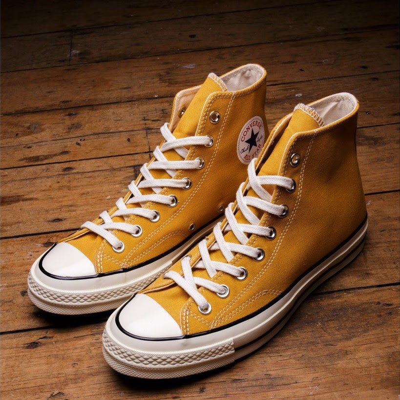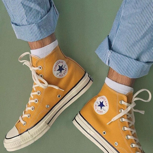 Ngay từ cái tên, chắc chắn các bạn sẽ hình dung ngay ra rằng đây là một đôi giày tràn đầy màu nắng rồi đúng không. Và không hề sai, khi sản phẩm này là một trong những đôi Converse High top đẹp ngất ngây mà các bạn trẻ thi nhau săn lùng. Màu vàng cực trending được thiết kế trên nền của một đôi Converse 1970s cao cổ khỏe khoắn đẹp hết nấc.