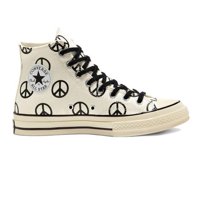 Chuck 70s đã trở lại lợi hại hơn trong năm 2020 này với phiên bản Unleash Peace nhẹ nhàng nhưng chứa đựng cả một thông điệp hòa bình, đoàn kết trước tình hình cả thế giới đang chung tay chống dịch Covid. Thiết kế giày có gam màu trắng ngà mang đậm chất vintage cùng họa tiết biểu tượng Peace mới lạ sẽ thổi bùng lên làn gió mới cho outfit của các bạn trẻ. Không chỉ ấn tượng trong mỗi bước đi, từng bạn trẻ sử dụng Converse Chuck Taylor All Star 1970s Unleash Peace cũng góp phần truyền tải thông điệp yêu thương lan rộng ra khắp nơi trên thế giới.