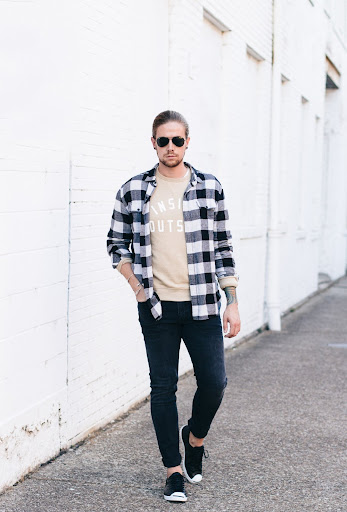 Một set đồ mang tính thời đại khá hiệu quả, khi các bạn sử dụng đôi Converse Jack Purcell màu đen, mix cùng quần bò dáng bó ôm sát khoe đôi chân khỏe chắc và dài đáng ngưỡng mộ. Điểm nhấn của set đồ khiến nó khác biệt hơn so với những trang phục khác đó chính là việc mix áo thun ở phía trong áo với một chiếc áo sơ mi kẻ caro đen - ghi - trắng. Trang phục mang một vẻ đẹp đơn giản, nhưng phù hợp với thời đại và dễ dàng sử dụng dù các bạn đi bất cứ đâu - đi học đi chơi hay đi hẹn hò với người yêu và bạn gái.