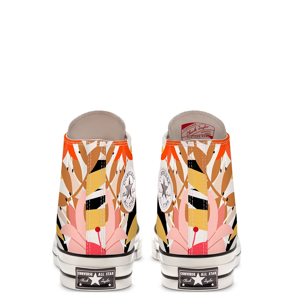 Đến với phiên bản cao cổ, tông màu cam hồng cực kỳ sành điệu nổi bật lên là những họa tiết hoa vintage được in sắc nét trên thân giày giúp các bạn nổi bật giữa đám đông. Họa tiết hoa khi được sắp xếp hợp lý lại cực kỳ phù hợp với thiết kế cao cổ vốn cho cái nhìn bụi bặm và cá tính của Converse. Những tông màu ngọt ngào bay bổng này lại đang là những tông màu cực kỳ trend và được các bạn trẻ yêu thích.
