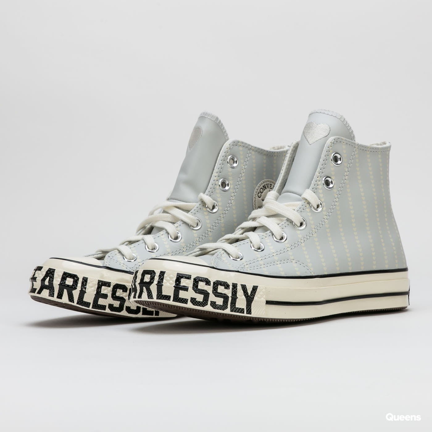 Ở phiên bản Chuck Taylor All Star Love Fearlessly, đây được đánh giá là một item tổng hợp được những chi tiết đáng giá của cả BST. Hình ảnh trái tim đỏ nhỏ nhắn cực đáng yêu được bố trí phía trước mũi giày cực kỳ dễ thấy tạo được sự đồng điệu cho tổng thể dòng sản phẩm. Item này cũng sử dụng chất vải nhẹ thoáng đặc trưng, kéo theo đó là ưu thế về bộ đế cao hơn giúp tối ưu “chiều cao” cho hội chị em kể cả những người mi nhon hoặc “nấm lùn”.