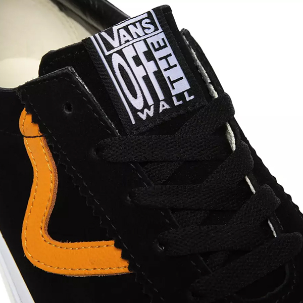 So sánh với những sản phẩm Vans thông thường, dòng giày Vans Sport cũng được coi là giữ khá nguyên bản gốc, chỉ thêm một số điểm trong thiết kế để nó trở nên mới mẻ và hấp dẫn hơn, phù hợp với nhu cầu và thị hiếu của người sử dụng hơn. Về chất liệu, dòng sản phẩm này phá cách hơn khi có sự kết hợp độc đáo giữa vải canvas, da lộn và da một cách tinh tế chứ không chỉ dùng một chất liệu da lộn như trước đây. Sự pha trộn chất liệu cũng tạo ra những khoảng không gian riêng biệt, nhằm nhấn mạnh những chi tiết trên sản phẩm. Dài logo Flying V vẫn được giữ nguyên màu trắng mà không có thêm sự thay đổi nào khác. Về họa tiết, những đôi giày Vans Sport được đổi mới bằng những họa tiết mạnh mẽ nam tính như màu loang, da rắn bên cạnh những tông màu huyền thoại được giữ nguyên. Phần lưỡi gà của giày vẫn là dòng chữ quen thuộc không thể nhầm lẫn của Vans: “OFF THE WALL”.