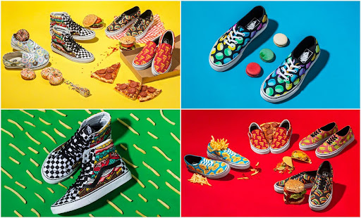 Vans là 1 nhãn hiệu luôn đầy tính sáng tạo, không ngừng phát huy tính độc đáo và linh hoạt trong cách đưa những điều tưởng chừng nhỏ bé giản dị từ cuộc sống và cảm hứng xung quanh vào những sản phẩm của mình. Với dòng sản phẩm được sử dụng công nghệ in hình độc đáo này, niềm cảm hứng đó lại đến từ những món ăn nhanh quen thuộc với giới trẻ hiện nay như hamburger, pizza, khoai tây chiên hay món cupcake… Công nghệ in sắc nét, đẹp mắt khiến bạn còn cảm thấy đẹp và ngon mắt hơn cả trên báo, tạp chí. Bên cạnh đó, thông điệp về những món ăn nhanh, giảm thiểu tình trạng béo phì cũng được Vans gửi gắm đến cho người sử dụng.