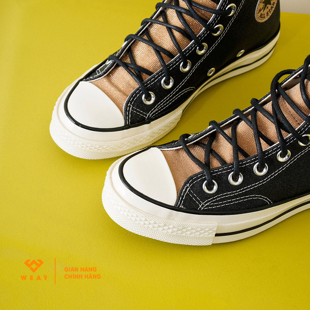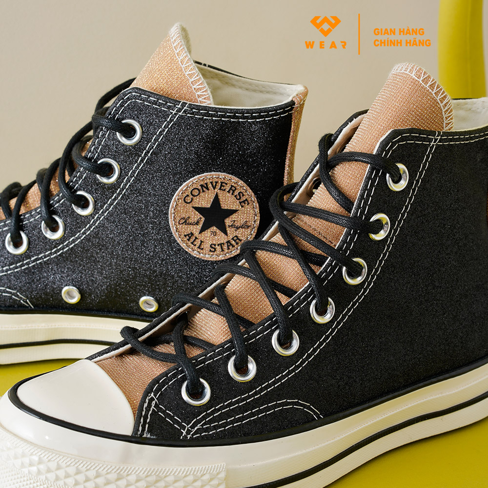 Giày Converse Chuck 70 Authentic Glam với phối màu mới lạ thân giày màu đen pha chút màu nâu ở lưỡi gà tạo cảm giác khác biệt hoàn toàn hứa hẹn là một item không thể thiếu trong tủ đồ của các tín đồ thời trang hiện đại. Bản phối đúng chất độc đáo khi các chi tiết được phủ ánh sáng lấp lánh như những chiếc đầm dạ tiệc của những cô nàng chân dài, siêu ấn tượng, siêu thú vị và đậm chất lễ hội dành cho fans mê giày trên toàn cầu.