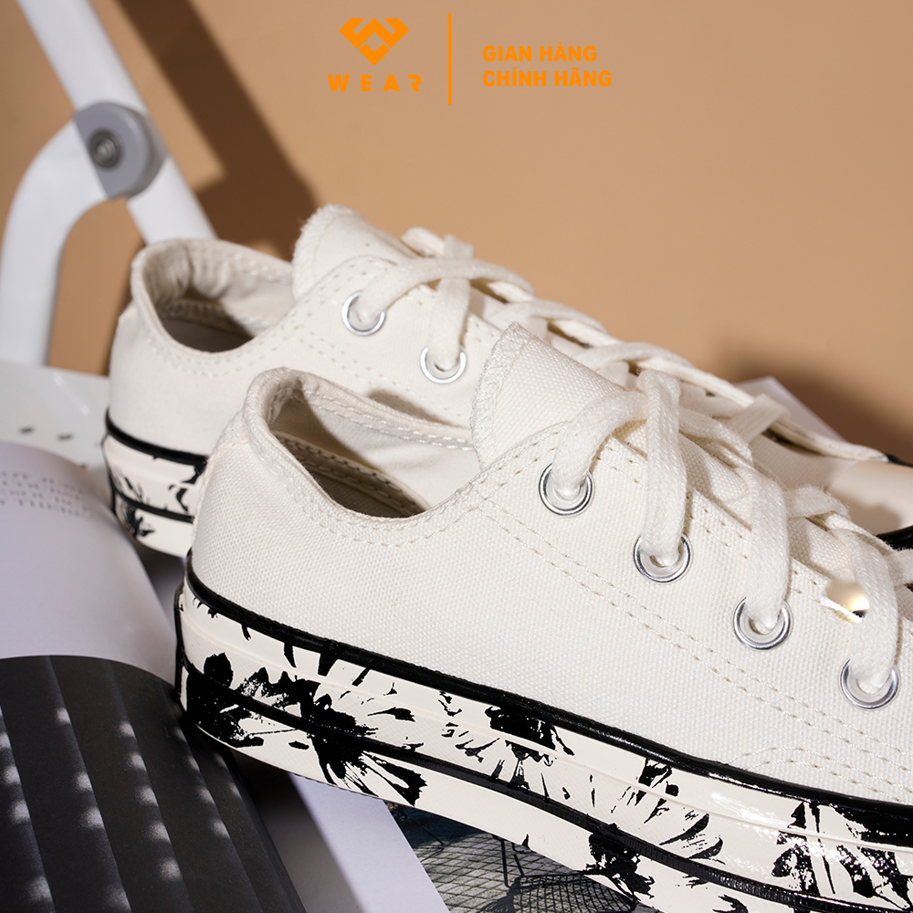 BST này cũng không thể thiếu được dòng giày vừa cổ điển vừa hiện đại nhà Converse Chuck 70 với cả hai phiên bản cao cổ và thấp cổ. Chuck 70 'Hybrid Floral' mang lại cảm giác cao cấp hơn khi họa tiết hình hoa trên thân giày được mix giữa hai hình thức phác họa hình hoa đó chính là vừa in lụa vừa dập nổi bằng con thoi.
