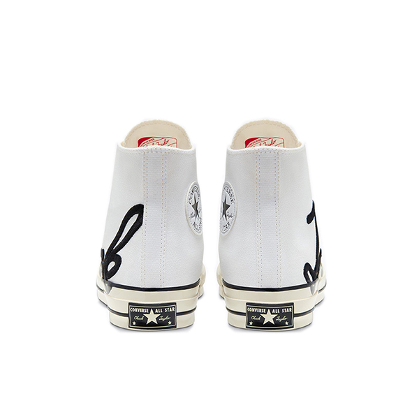 Ấn tượng nhất trong BST lần này có lẽ chính là một đôi Converse chuck 70 signature phiên bản cao cổ. Giữ nguyên được nét truyền thống của một đôi giày Chuck 70 Classic High Top, điểm nhấn khiến bạn khó rời mắt chính là ở dòng chữ Chuck Taylor được in đậm nổi bật ở mặt trong và mặt ngoài giày. Công nghệ thêu hiện đại giúp dòng chữ trở nên nổi bật hơn bao giờ hết, như một dấu mộc không thể xóa nhòa trong trí nhớ của những tín đồ thời trang từ xa xưa, sự kế thừa và nối tiếp của sản phẩm này chắc chắn sẽ còn làm vang bóng quá khứ rực rỡ của Chuck 70.