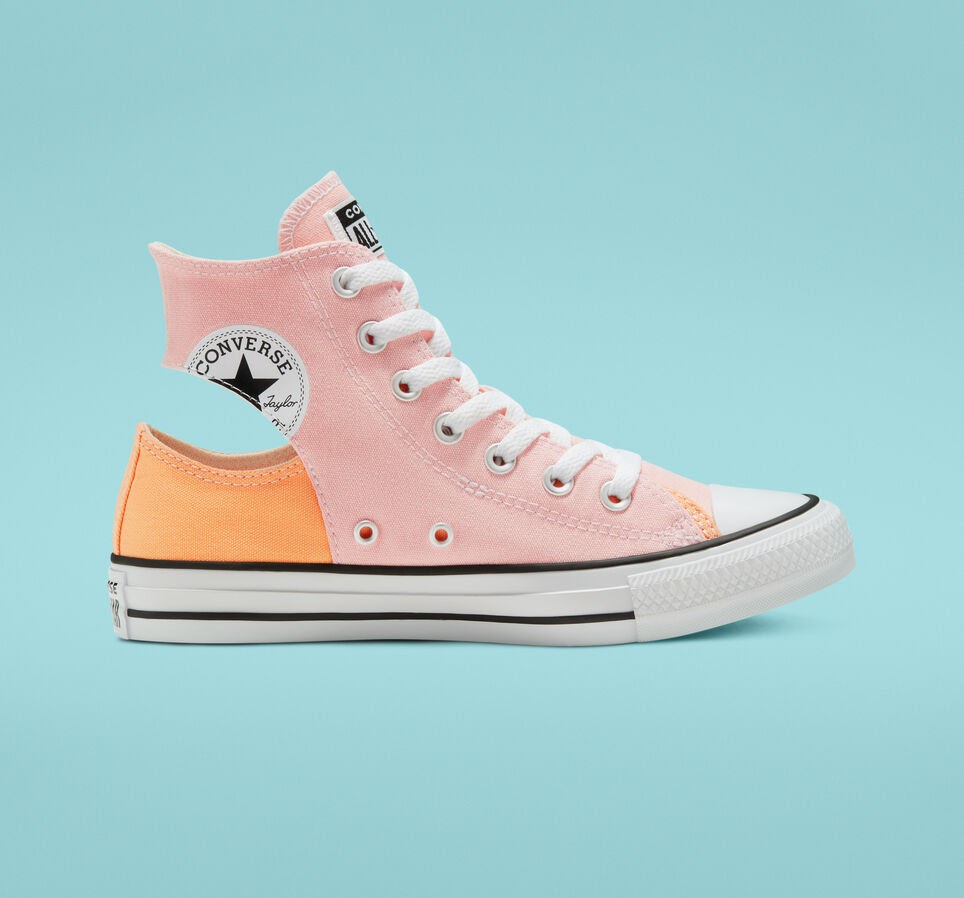 Một đôi giày Chuck Taylor All Star đỉnh cao của Converse nay được thể hiện với một vẻ ngoài cực kỳ khác. Đôi giày cao cổ tưởng chừng đã quá nổi bật và cá tính với các bạn trẻ, nay lại được cắt gọt táo bạo phần gót giày vừa độc đáo, cá tính lại cực kỳ sáng tạo. Phần cắt gót này ở vị trí mắt cá chân, độ rộng của khoảng cắt cũng vừa phải, đủ để tạo ra khoảng hở nhưng không khiến phần cổ trên giày bị thiếu điểm đỡ và mất form dáng. Với tông màu hồng và cam đầy độc đáo, các bạn nữ cá tính hoặc các bạn nam trẻ trung cũng đều có thể sử dụng được sản ph ẩm này.