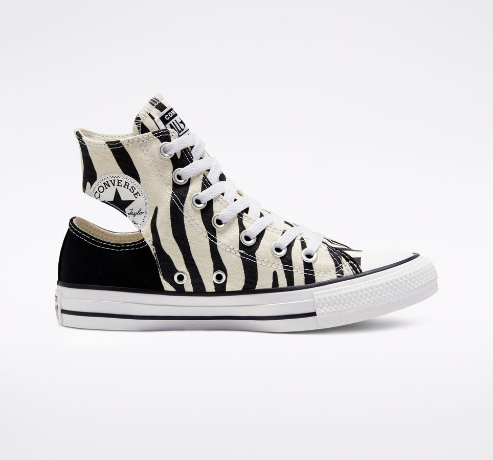 Nếu bạn không muốn quá nổi bật với các tông màu hồng, cam hơi nữ tính như trên, các bạn có thể lựa chọn một đôi Sunblocked Twisted Upper Chuck Taylor All Star đầy quyến rũ này. Thiết kế với tông màu trắng, đen cùng họa tiết sọc nhìn như một chú ngựa vằn đầy sức trẻ sẽ phù hợp với nhiều bạn nam hiện nay. Phần cut out cũng tương tự như đôi Twisted Upper Chuck Taylor All Star ở trên, khá nhỏ nhắn ở phần mắt cá chân của giày - vừa đủ để các bạn trở nên độc đáo hơn trong phong cách.