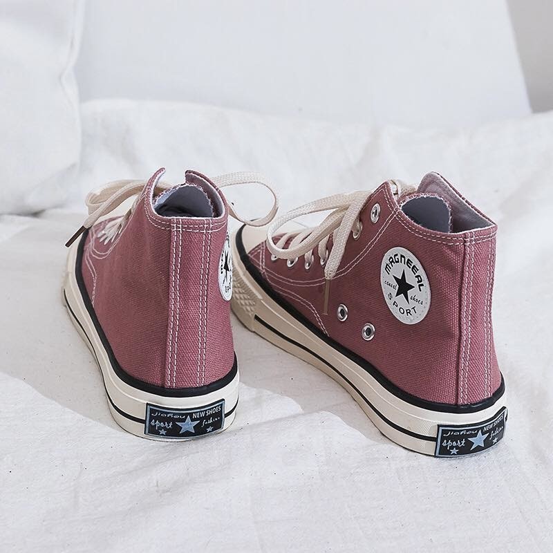Sắc màu hồng đất được trải rộng lên thân giày, vừa tạo được điểm thu hút vừa đơn giản nhưng lại đủ ấn tượng với người đối diện. Các bạn có thể diện giày Converse hồng đất cổ cao với những set đồ như quần bò áo phông, quần bo gấu và những dạng quần áo thời trang mang tính đường phố trẻ trung.