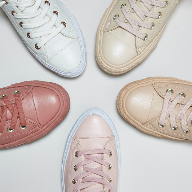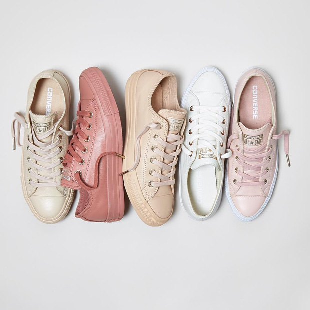 Bộ sưu tập Holiday Nude Collection của Chuck Taylor All Stars nổi bật với những đôi giày converse hồng, hay màu nude nhẹ nhàng được thiết kế tinh tế đến từng chi tiết. Đây là sản phẩm được kết hợp bởi Converse với Office, thương hiệu bán lẻ nổi tiếng nước Anh dành riêng cho các chị em phụ nữ. Không còn phần đế giày cao su màu trắng quen thuộc với dải đen mạnh mẽ nữa, thay vào đó những đôi giày converse hồng sẽ được thiết kế với dải đồng màu từ thân giày xuống đế; tạo thành một đôi giày ton-sur-ton siêu nữ tính.