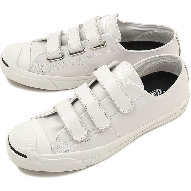 White Converse Jack Purcell 3 Strap Velcro Leather Low Top Shoes