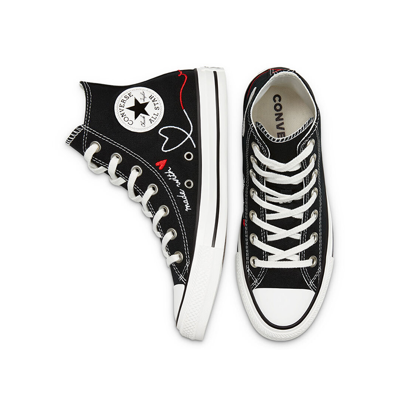 Đến hẹn lại lên, Converse lại tung ra món quà dành riêng cho mùa lễ tình nhân 2021 với những chi tiết trái tim được thể hiện đẹp mắt trên thân giày. Sản phẩm mang tên Converse Valentine's Day Chuck Taylor All Star High Top với hai phiên bản màu đen và trắng vừa thể hiện được nét đẹp cổ điển, vừa cực kỳ thích hợp để trở thành đồ đôi của những người yêu nhau.