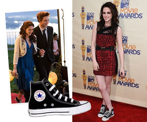 Chúng ta từng bắt gặp hình ảnh cô diễn viên Kristen Stewart mê mẩn dòng sản phẩm này, với một nét độc đáo trong thời trang từ đời thường cho tới trên sàn diễn và thảm đỏ, mang lại hình ảnh đẹp đẽ trong mắt người hâm mộ. Cô nàng cùng những đôi Converse cao cổ, cân tất dù là quần áo, váy hay là những trang phục đứng đắn và lịch thiệp.