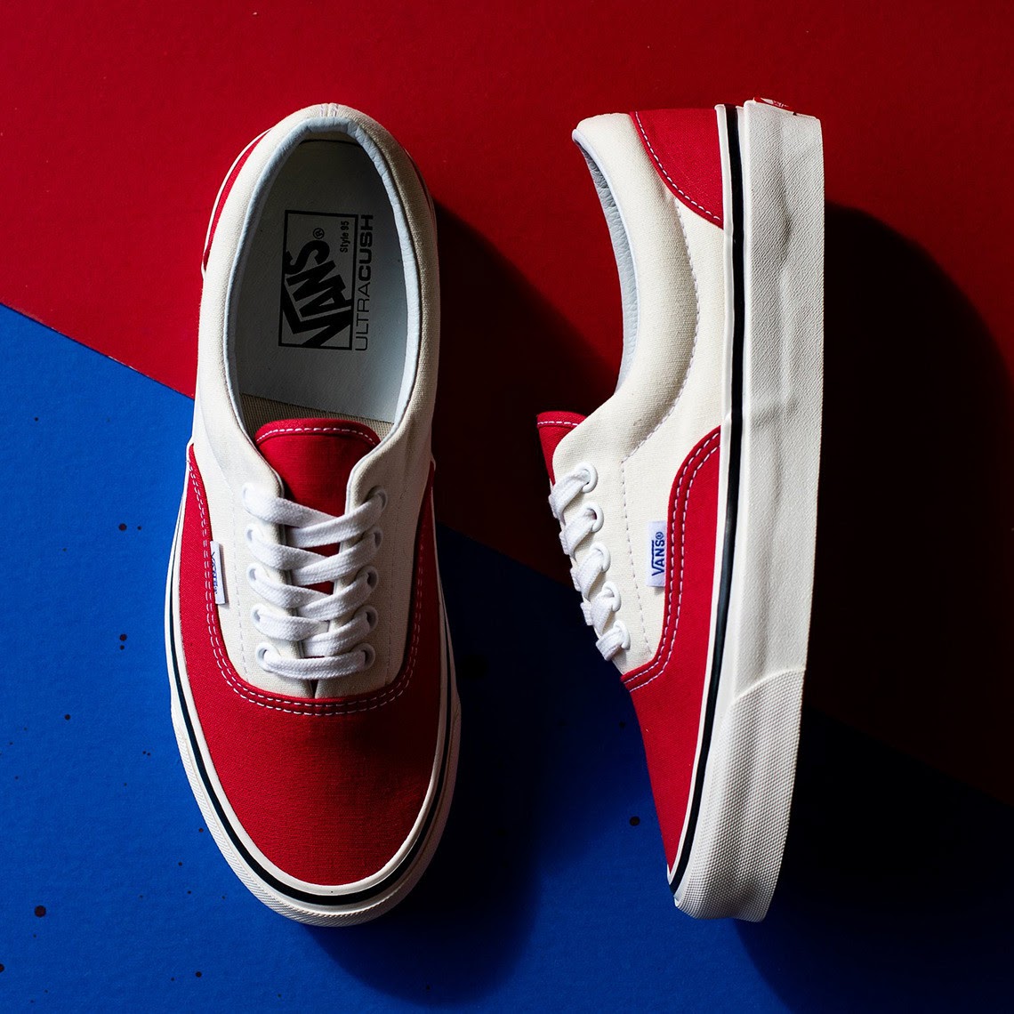 Đôi giày gây ấn tượng nhất với người sử dụng bởi cách đi màu siêu đẹp và chất đó chính là đôi Classic Colors Cover This Vans Era. Thiết kế đơn giản của đôi Vans Era cùng với hai tông màu đỏ trắng đã tạo ra được những nét hấp dẫn riêng mà không phải sản phẩm nào cũng có được. Màu đỏ tràn viền ở những phần xung quanh giày, màu trắng được thiết kế tinh tế giữa phần lưỡi gà ăn xuống phần cạnh giày. Từng đường nét uốn lượn của đôi Vans Era càng trở nên nổi bật với sự phân tách của hai tông màu đối lập. Các bạn trẻ hoàn toàn thể hiện được cá tính và sự nổi bật của mình khi sử dụng đô Vans 2 màu cực chất này.