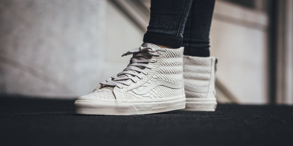 Cá tính, sang chảnh và có một chút gì đó sự cao ngạo chính là những từ dùng để miêu tả về một đôi Vans WMNS Sk8-Hi Slim Zip DX - White. Thiết kế vải dày xếp chồng dần đều nhìn như vảy rắn cực ấn tượng khiến các cô nàng mê mẩn ngay từ lần đầu tiên nhìn thấy.