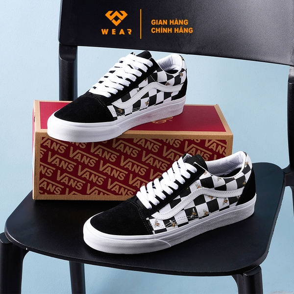 Với giày Vans Bee Check, các bạn có thể thấy họa tiết thương hiệu của Vans chính là họa tiết Checkerboard hay họa tiết bàn cờ được thể hiện sống động hơn với in hình những chú ong mật đang bay khắp thân giày. Nhờ chi tiết này, đôi giày trở nên thật hơn, như đang chuyển động theo từng đường bay của những chú ong đi kiếm mật, bay lượn khắp nơi trên bầu trời.