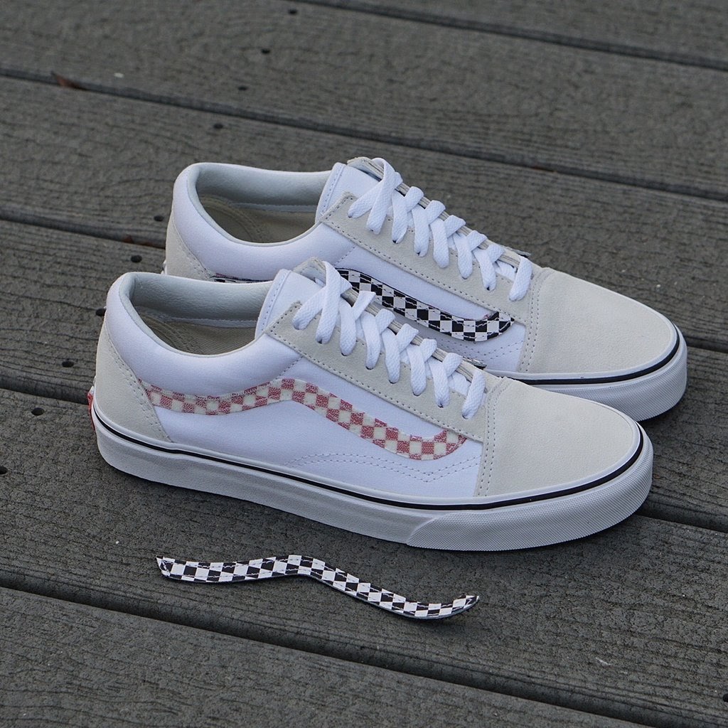 Old Skool tuy nhiên, chi tiết lượn sóng đặc trưng của sản phẩm đã được biến tấu cách điệu từ họa tiết Checkerboard bằng những miếng dán có thể tháo rời một cách thời trang và độc đáo. Sáng tạo này giúp người sử dụng có thể thay đổi tùy ý theo những set đồ hằng ngày, ngoài ra đó cũng là một cách biến đổi để đôi giày có thể diện theo nhiều cách khác nhau.