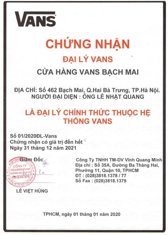 Store Vans: 20 Cầu Đất - Ngô Quyền - TP Hải Phòng -Tel: 024.777.02.777 ext 107