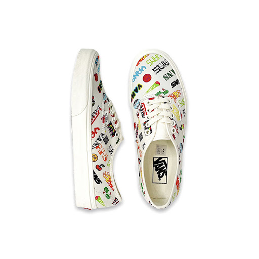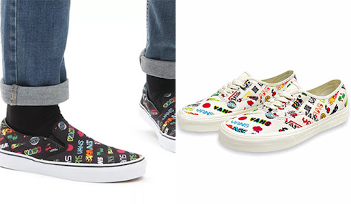 Những logo chữ Vans này được mix tùy ý, đôi khi xen lẫn hình trái tim đỏ rực, hình quả cherry, hình trái bóng... nổi bật và ấn tượng. Những logo này càng trở nên mới lạ đặc biệt hơn trên nền giày màu trắng và đen. Một thiết kế đơn giản nhưng lại hiệu quả trong việc tôn lên những logo màu sắc của Vans.