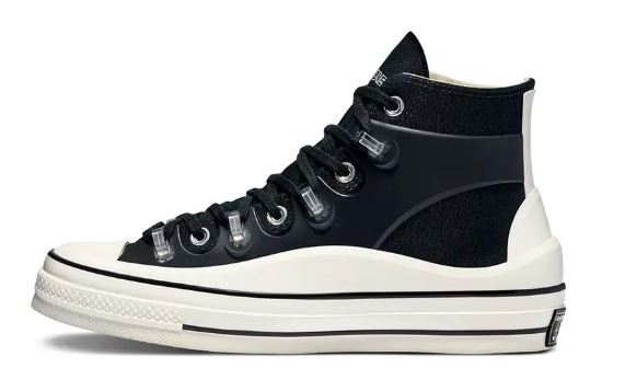 Dựa trên nền vải canvas, Jones cập nhật giao diện tinh tế của Chuck Taylor All Star hiện đại bằng cách thêm một lớp đệm TPU trong suốt bọc ở ngoài ở hai bên và mặt sau, hoạt động như một lớp thứ hai ở bên ngoài cung cấp thêm sự hỗ trợ, độ bền và cấu trúc đa dạng cho đôi Converse Chuck 70 vốn rất được yêu thích. Chi tiết này trong suốt, nổi bật với màu đen của đôi giày. Sản phẩm cũng vẻ ngoài tiện dụng được nâng tầm với các khoen kim loại xen kẽ với móc chắc chắn.