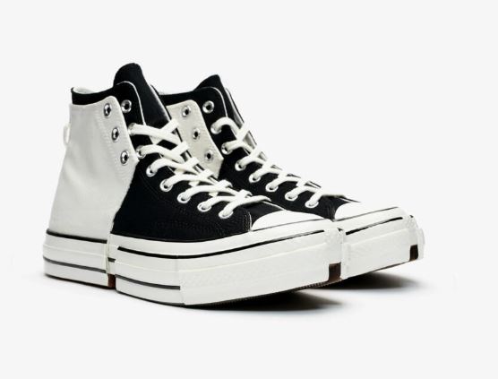 Converse đã khiến các bạn trẻ mê thời trang nói chung và mê giày nói riêng một phen náo loạn, thậm chí là như một cú nổ vì hình ảnh đôi Chuck Taylor 70 đầy lạ mắt này. Đôi giày được cắt xén đầy mạnh bạo, thiết kế phối màu siêu chất thành những mảnh ghép khác nhau. Sau đó, chúng được chắp nối lại với nhau chỉn chu để thành một đôi giày hoàn chỉnh với nhiều lớp layers cực sành điệu. Phiên bản độc đáo này là sự kết hợp hết sức sáng tạo của 2 nhà thương hiệu Converse và Feng Chen Wang với tông màu trắng đen đơn giản nhưng hiệu quả và ấn tượng. Đôi giày sử dụng tông màu đen nhưng lại phối hợp xen kẽ màu trắng, vừa chất vừa siêu thu hút và cũng cực kỳ dễ dàng khi các bạn mix đồ.