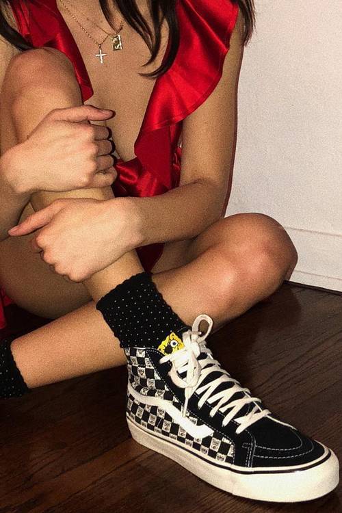 Còn nếu bạn muốn trông thật nổi bật trong buổi party, muốn trông nữ tính và thu hút nhưng không quá bánh bèo, ở đây chúng tôi có giày Vans Sk8-Hi giúp bạn làm điều đó.