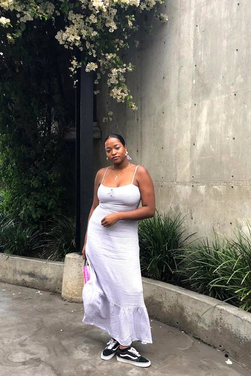 Một chiếc váy tanktop đơn giản và giày Vans Old Skool sẽ tạo nên một bộ trang phục mùa hè lý tưởng. Vừa cá tính, vừa sexy là miêu tả về outfit này.