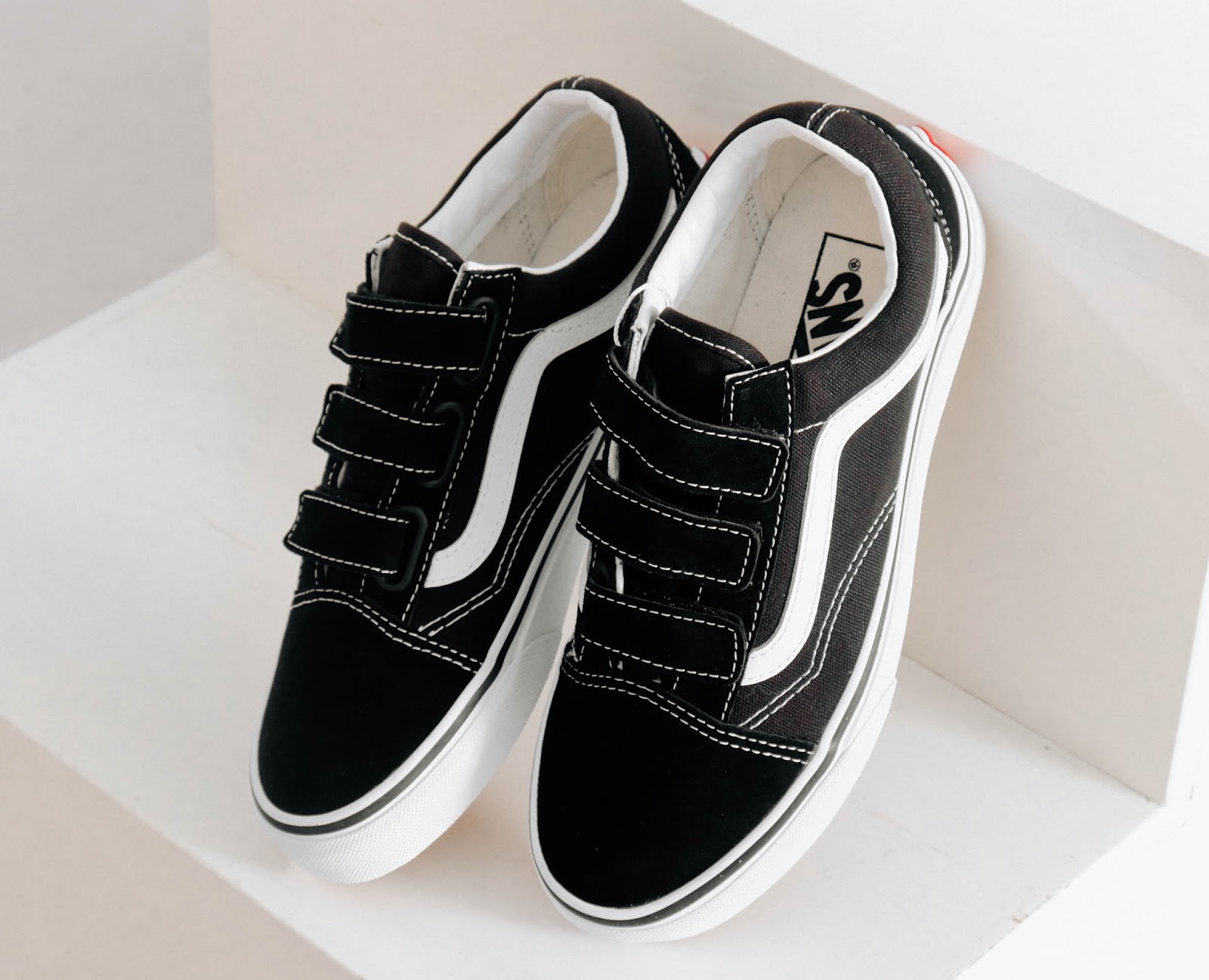 Với vẻ ngoài khá giống với đôi giày Vans Old Skool màu đen basic. Tuy nhiên, điều đặc biệt của đôi giày Vans Old Skool V Black White này chính là không sử dụng dây giày. Chúng ta có thể sử dụng phần miếng dán ở thân giày để điều chỉnh độ rộng, chật của giày. Không có dây giày nên đôi giày trông rất đặc biệt và thời trang. Chính vì vậy, item này cũng vinh dự khi lọt top những đôi giày được ưa chuộng nhất nhì thị trường hiện nay.