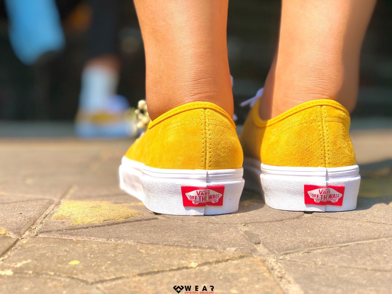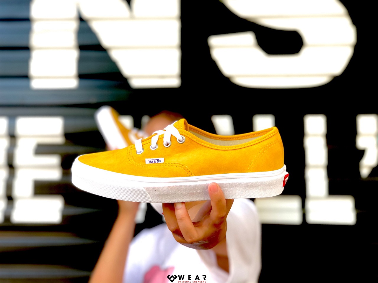 Mẫu Vans Authentic màu vàng da lộn mang đến một màu sắc tươi mới của “nắng vàng” rực rỡ giúp đánh bay đi cái lạnh của những ngày gần đông. Bộ đôi với thiết kế đơn giản, không quá phô trương hầm hố nhưng vẫn giữ được chất riêng khó cưỡng cuốn hút mọi ánh nhìn