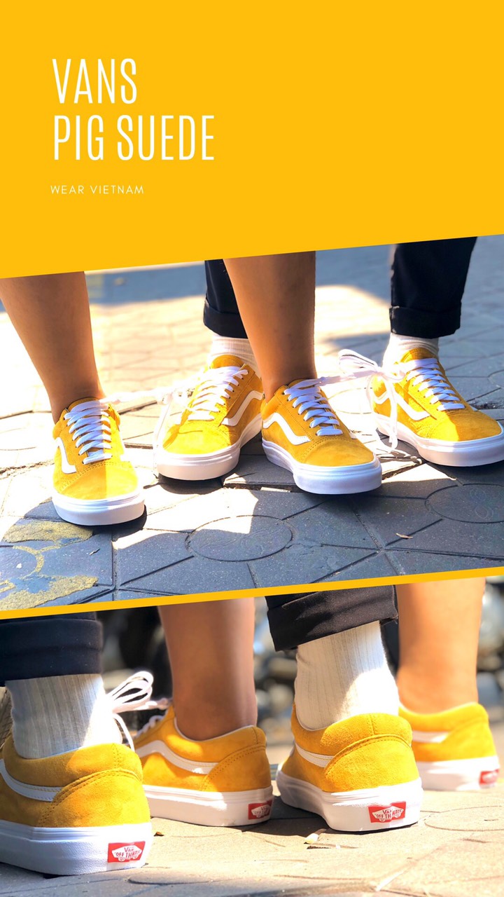 - Vans Pig Suede mang đến một màu sắc tươi mới của “nắng vàng” rực rỡ giúp đánh bay đi cái lạnh của những ngày gần đông. Bộ đôi với thiết kế đơn giản, không quá phô trương hầm hố nhưng vẫn giữ được chất riêng khó cưỡng cuốn hút mọi ánh nhìn.